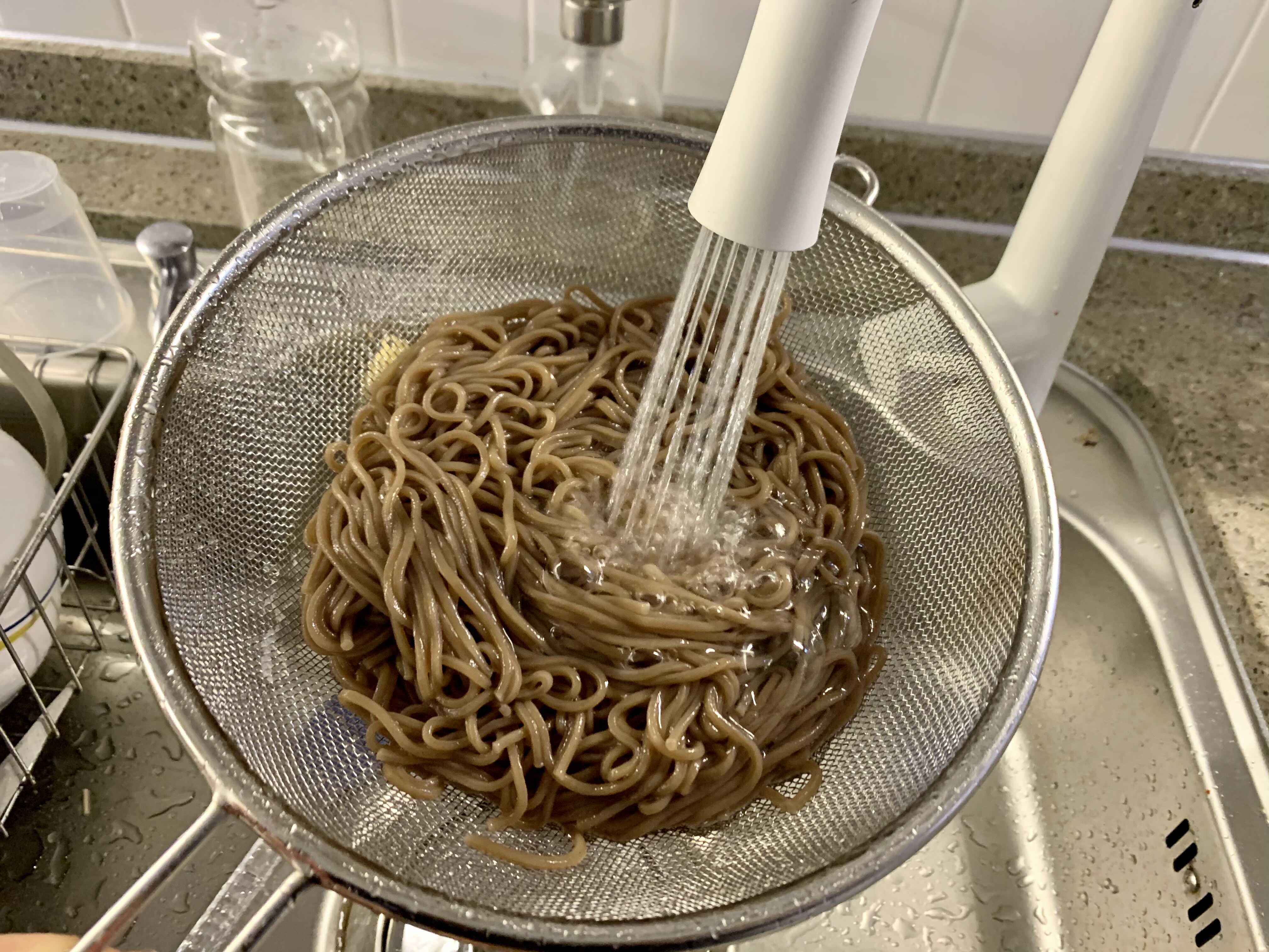 # 물기를 충분히 털고 예쁜 그릇에 면을