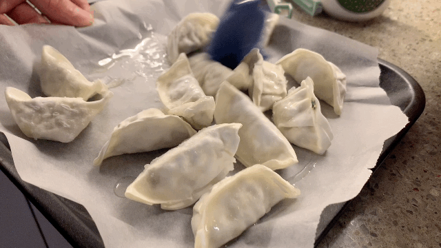 만두를 종이호일 위에 올려
